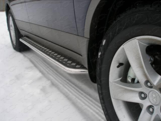 Пороги с площадкой 42,4мм для автомобиля Hyundai ix55 2009-2013 представляет собой элемент тюнинга и защиты автомобиля и производится специально для данной модели. Данное изделие изготавливается из нержавеющей стали и полируется вручную, что обеспечивает сохранение отличного внешнего вида в течение длительного времени в наших непростых климатических условиях. Срок поставки продукции производства компании TCC Тюнинг составляет 1-5 дней. Установить Пороги с площадкой 42,4мм для автомобиля Hyundai ix55 2009-2013 можно на нашем сервисе, предварительно записавшись по телефону.