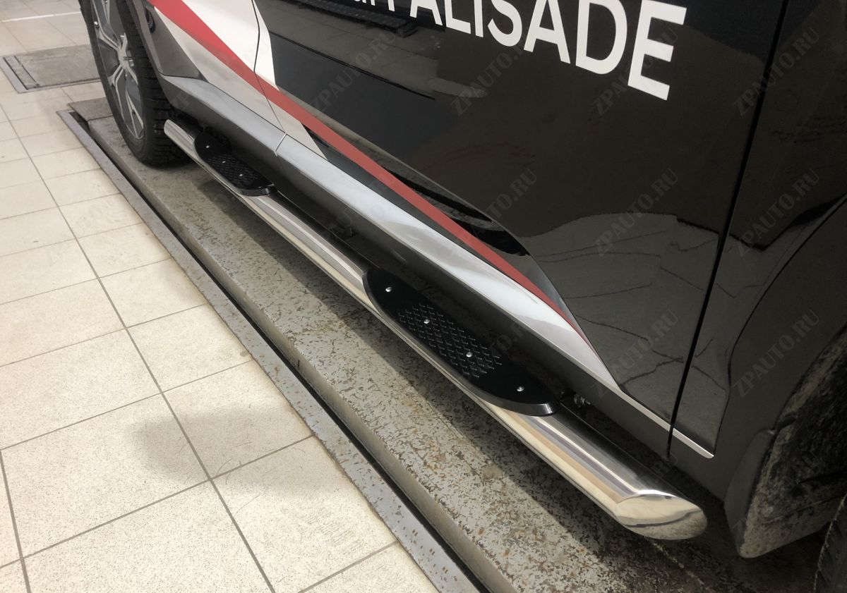 Пороги d 76 арт. НYP.21.93 для автомобиля HYUNDAI Polisade 2021 - представляет собой элемент тюнинга и защиты автомобиля и производится специально для данной модели. Данное изделие изготавливается из нержавеющей стали и полируется вручную, что обеспечивает сохранение отличного внешнего вида в течение длительного времени в наших непростых климатических условиях. Срок поставки составляет 1-5 дней. Установить деталь Пороги d 76 арт. НYP.21.93 для автомобиля HYUNDAI Polisade 2021 можно на нашем сервисе, предварительно записавшись по телефону.