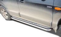 Защита порогов d42 с листом Hyundai Santa-Fe Classic (2000-2012) Black Edition, Slitkoff, арт. HSFT013BE
