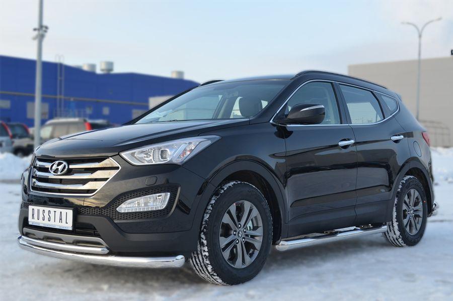 Пороги для Hyundai Santa Fe 2012 HSFT-001224/1 изготовлены из высококачественной нержавеющей стали марки AISI 304, труба имеет диаметр 76 мм. Торцы труб скошены под 45 градусов.