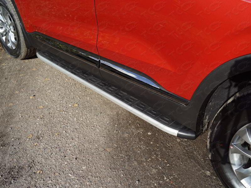 Пороги алюминиевые с пластиковой накладкой 1820 мм для автомобиля Hyundai Santa Fe (TM) 2018- представляет собой элемент тюнинга и защиты автомобиля и производится специально для данной модели. Данное изделие изготавливается из нержавеющей стали и полируется вручную, что обеспечивает сохранение отличного внешнего вида в течение длительного времени в наших непростых климатических условиях. Срок поставки продукции производства компании TCC Тюнинг составляет 1-5 дней. Установить Пороги алюминиевые с пластиковой накладкой 1820 мм для автомобиля Hyundai Santa Fe (TM) 2018- можно на нашем сервисе, предварительно записавшись по телефону.
