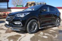 Защита порогов d76 с проступями Hyundai Santa-Fe (2012-2018) , Slitkoff, арт. HSFT12-006