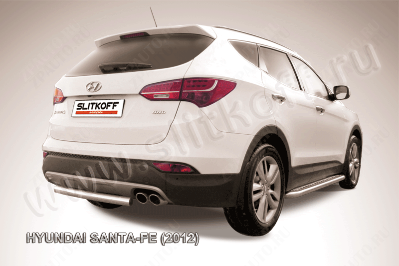 Защита заднего бампера d57 короткая Hyundai Santa-Fe (2012-2018) , Slitkoff, арт. HSFT12-009