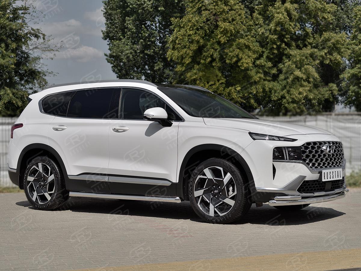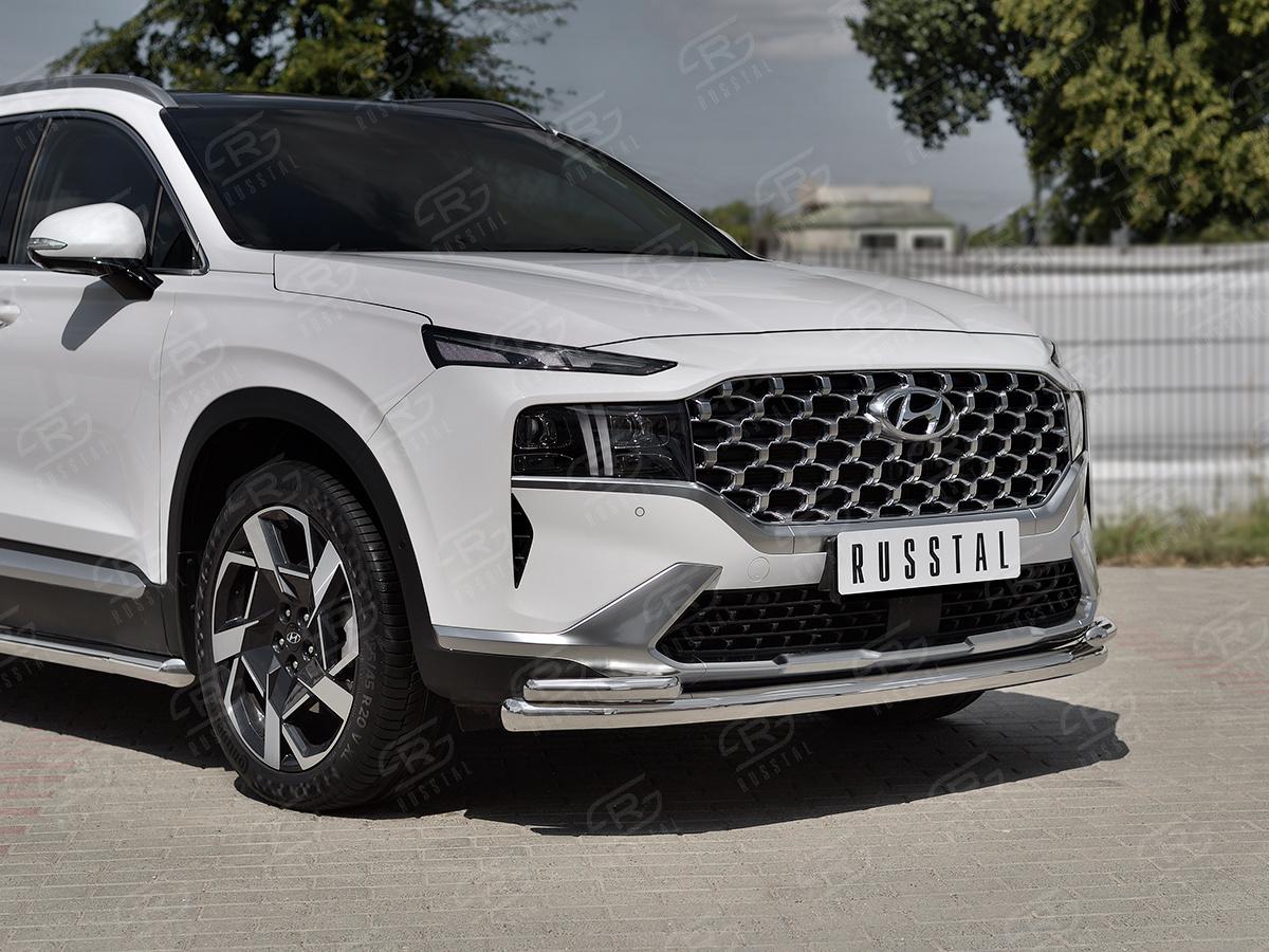 Защита переднего бампера d 57x42 арт. HSFZ-003598 для автомобиля HYUNDAI SANTA FE 2021- - представляет собой элемент тюнинга и защиты автомобиля и производится специально для данной модели. Данное изделие изготавливается из нержавеющей стали и полируется вручную, что обеспечивает сохранение отличного внешнего вида в течение длительного времени в наших непростых климатических условиях. Срок поставки составляет 1-5 дней. Установить деталь Защита переднего бампера d 57x42 арт. HSFZ-003598 для автомобиля HYUNDAI SANTA FE 2021- можно на нашем сервисе, предварительно записавшись по телефону.