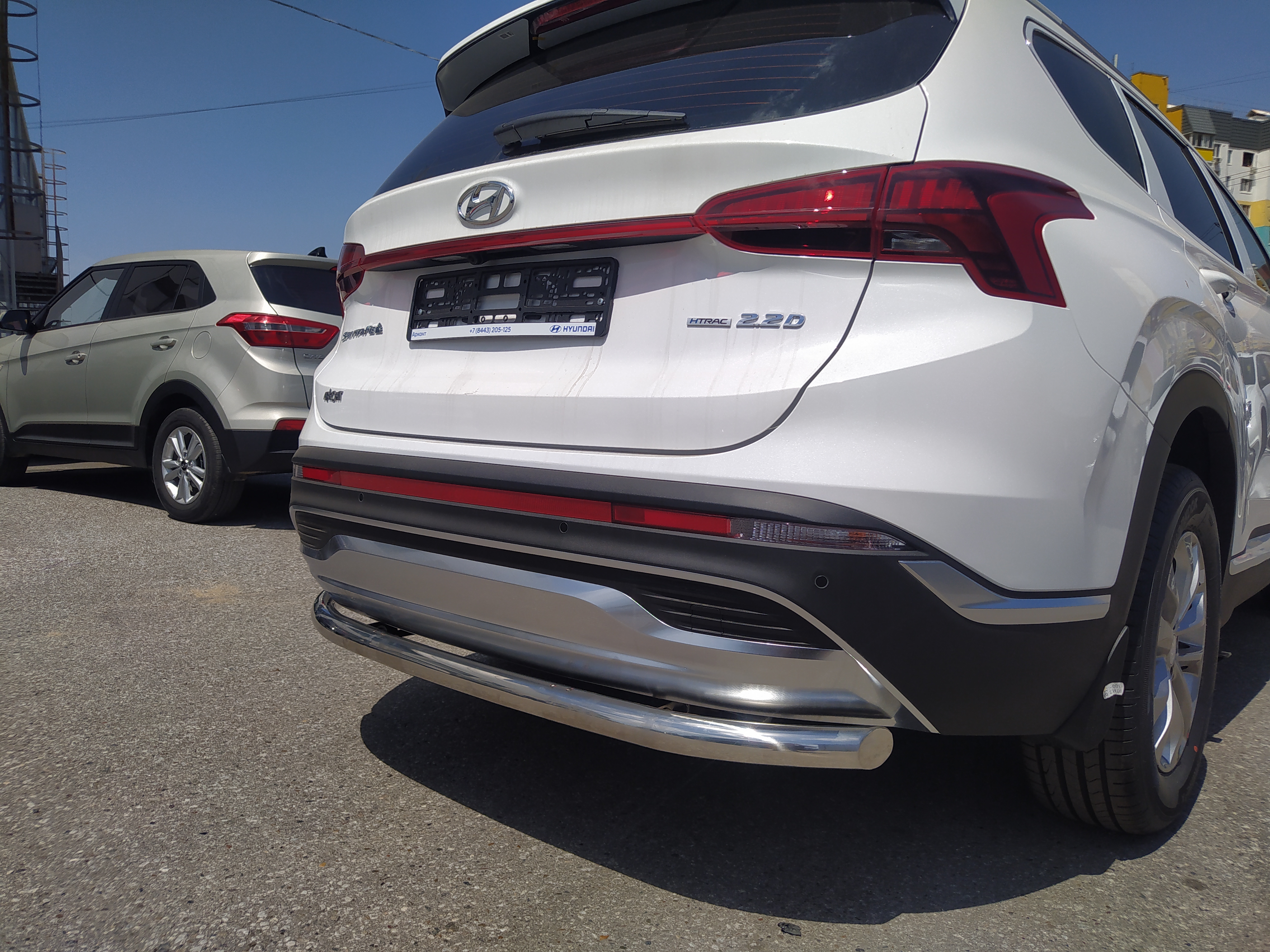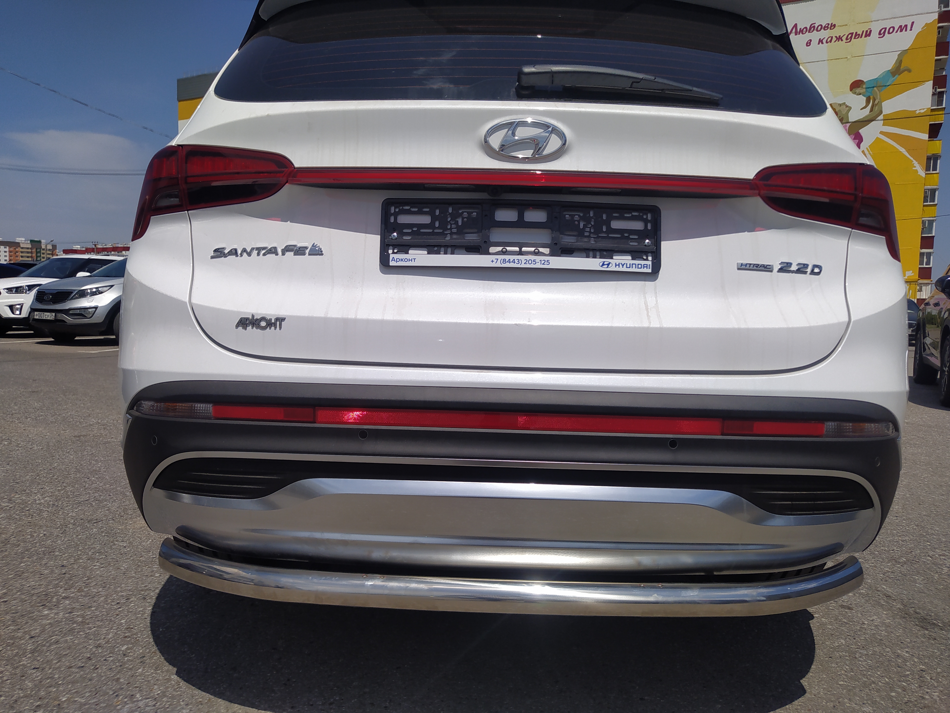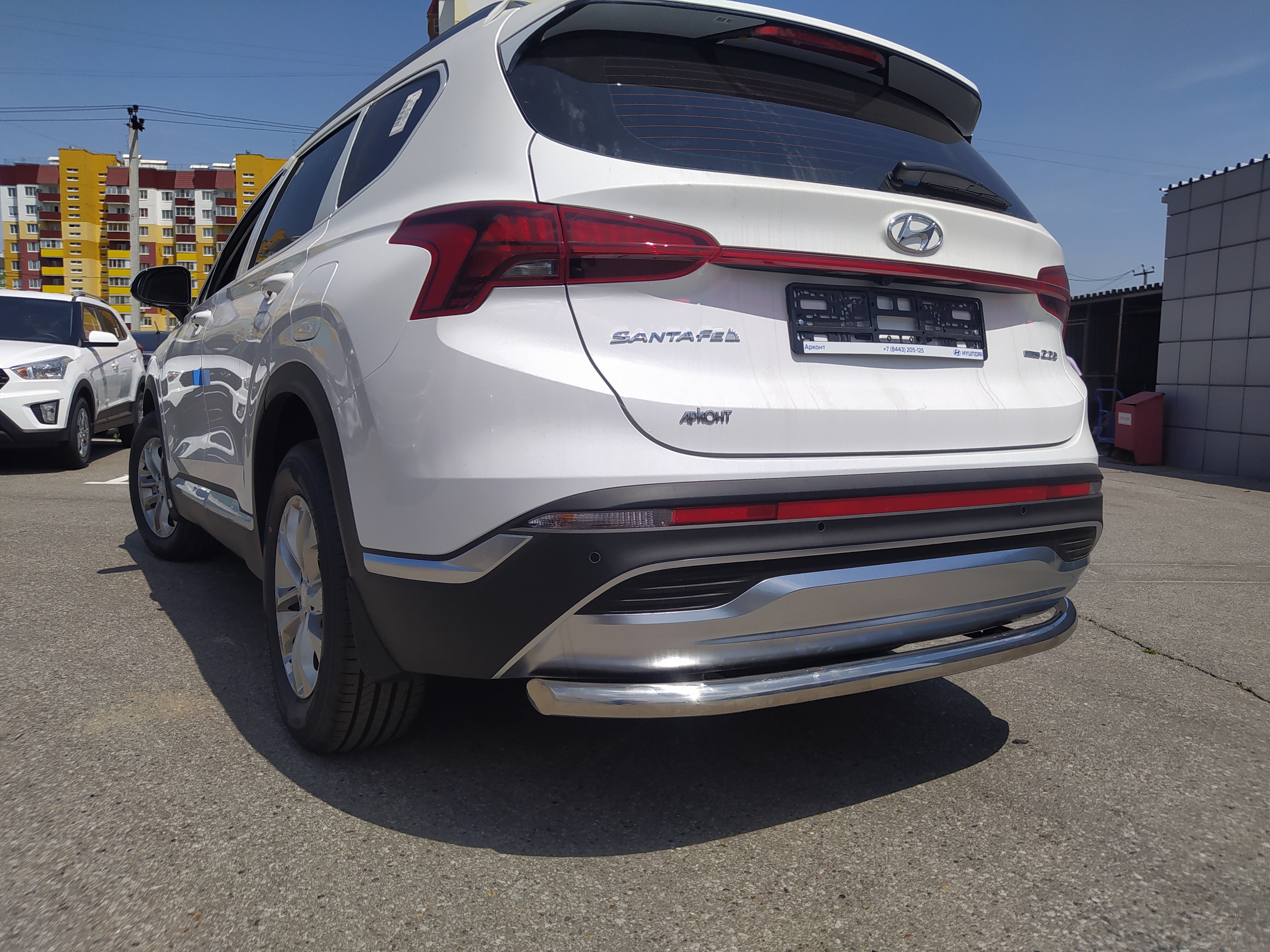 Защита заднего бампера d 60 арт. HYSF.21.11 для автомобиля HYUNDAI Santa Fe 2021 - представляет собой элемент тюнинга и защиты автомобиля и производится специально для данной модели. Данное изделие изготавливается из нержавеющей стали и полируется вручную, что обеспечивает сохраниение отличного внешнего вида в течение длительного времени в наших непростых климатических условиях. Срок поставки составляет 1-5 дней. Установить деталь Защита заднего бампера d60 арт.HYSF.21.11 для автомобиля HYUNDAI Santa Fe 2021 можно на нашем сервисе, предварительно записавшись по телефону.