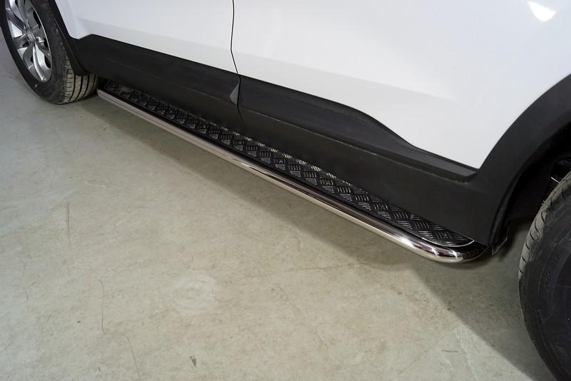 Пороги с площадкой 42,4 мм производства TCC Тюнинг арт. HYUNSF21-18 для автомобиля Hyundai Santa Fe 2021- - представляет собой элемент тюнинга и защиты автомобиля и производится специально для данной модели. Данное изделие изготавливается из нержавеющей стали и полируется вручную, что обеспечивает сохраниение отличного внешнего вида в течение длительного времени в наших непростых климатических условиях. Срок поставки составляет 1-5 дней. Установить деталь Пороги с площадкой 42,4 мм арт.HYUNSF21-18 для автомобиля Hyundai Santa Fe 2021- можно на нашем сервисе, предварительно записавшись по телефону.
