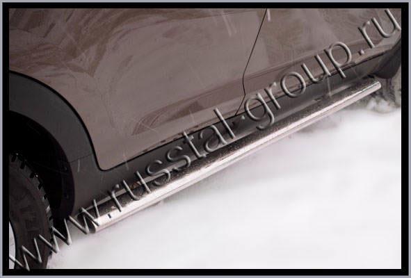 Пороги для Hyundai Tucson изготовлены из высококачественной нержавеющей стали марки AISI 304, труба имеет диаметр 75/42 мм.
