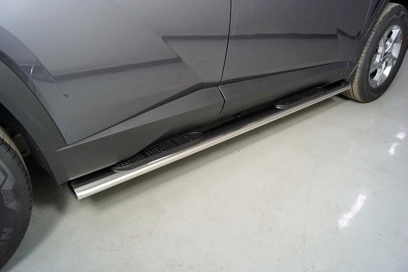 Пороги овальные с накладкой 120х60 мм производства TCC Тюнинг арт. HYUNTUC21-11 для автомобиля Hyundai Tucson 2021- - представляет собой элемент тюнинга и защиты автомобиля и производится специально для данной модели. Данное изделие изготавливается из нержавеющей стали и полируется вручную, что обеспечивает сохраниение отличного внешнего вида в течение длительного времени в наших непростых климатических условиях. Срок поставки составляет 1-5 дней. Установить деталь Пороги овальные с накладкой 120х60 мм арт.HYUNTUC21-11 для автомобиля Hyundai Tucson 2021- можно на нашем сервисе, предварительно записавшись по телефону.