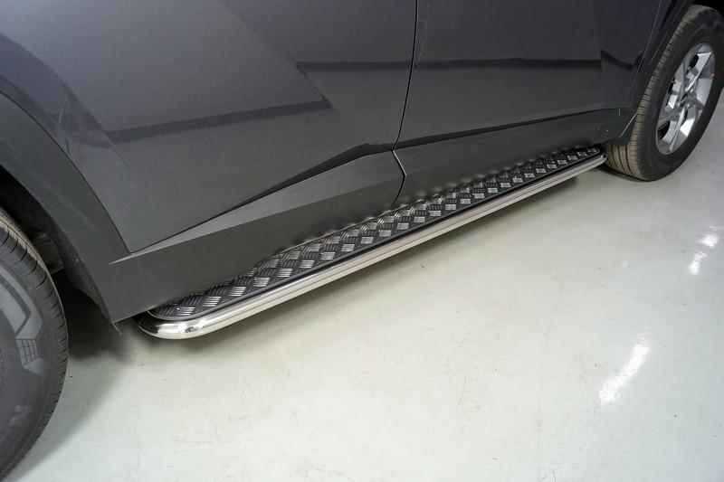 Пороги с площадкой 42,4 мм производства TCC Тюнинг арт. HYUNTUC21-15 для автомобиля Hyundai Tucson 2021- - представляет собой элемент тюнинга и защиты автомобиля и производится специально для данной модели. Данное изделие изготавливается из нержавеющей стали и полируется вручную, что обеспечивает сохраниение отличного внешнего вида в течение длительного времени в наших непростых климатических условиях. Срок поставки составляет 1-5 дней. Установить деталь Пороги с площадкой 42,4 мм арт.HYUNTUC21-15 для автомобиля Hyundai Tucson 2021- можно на нашем сервисе, предварительно записавшись по телефону.