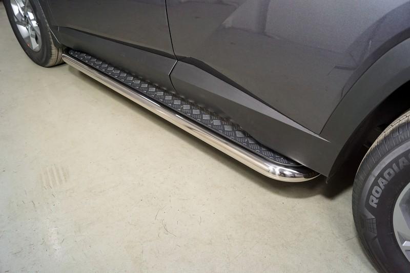 Пороги с площадкой 60,3 мм производства TCC Тюнинг арт. HYUNTUC21-17 для автомобиля Hyundai Tucson 2021- - представляет собой элемент тюнинга и защиты автомобиля и производится специально для данной модели. Данное изделие изготавливается из нержавеющей стали и полируется вручную, что обеспечивает сохраниение отличного внешнего вида в течение длительного времени в наших непростых климатических условиях. Срок поставки составляет 1-5 дней. Установить деталь Пороги с площадкой 60,3 мм арт.HYUNTUC21-17 для автомобиля Hyundai Tucson 2021- можно на нашем сервисе, предварительно записавшись по телефону.