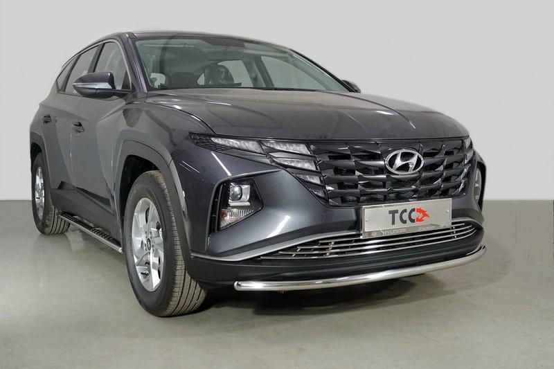 Защита передняя нижняя 42,4 мм производства TCC Тюнинг арт. HYUNTUC21-24 для автомобиля Hyundai Tucson 2021- - представляет собой элемент тюнинга и защиты автомобиля и производится специально для данной модели. Данное изделие изготавливается из нержавеющей стали и полируется вручную, что обеспечивает сохраниение отличного внешнего вида в течение длительного времени в наших непростых климатических условиях. Срок поставки составляет 1-5 дней. Установить деталь Защита передняя нижняя 42,4 мм арт.HYUNTUC21-24 для автомобиля Hyundai Tucson 2021- можно на нашем сервисе, предварительно записавшись по телефону.