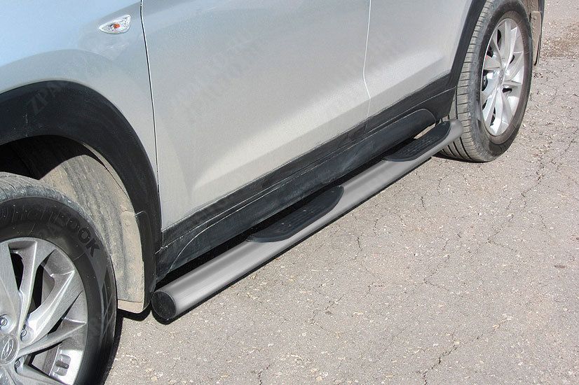 Защита порогов d76 с проступями серебристая Hyundai Tucson (2018-2021) , Slitkoff, арт. HT18004S