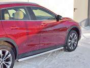 Пороги с листом (вариант 1) Slitkoff для Infiniti QX30 2016 (Инфинити QX30) IQX3L-0025021 изготовлены из высококачественной нержавеющей стали марки AISI 304, труба имеет диаметр 42 мм.