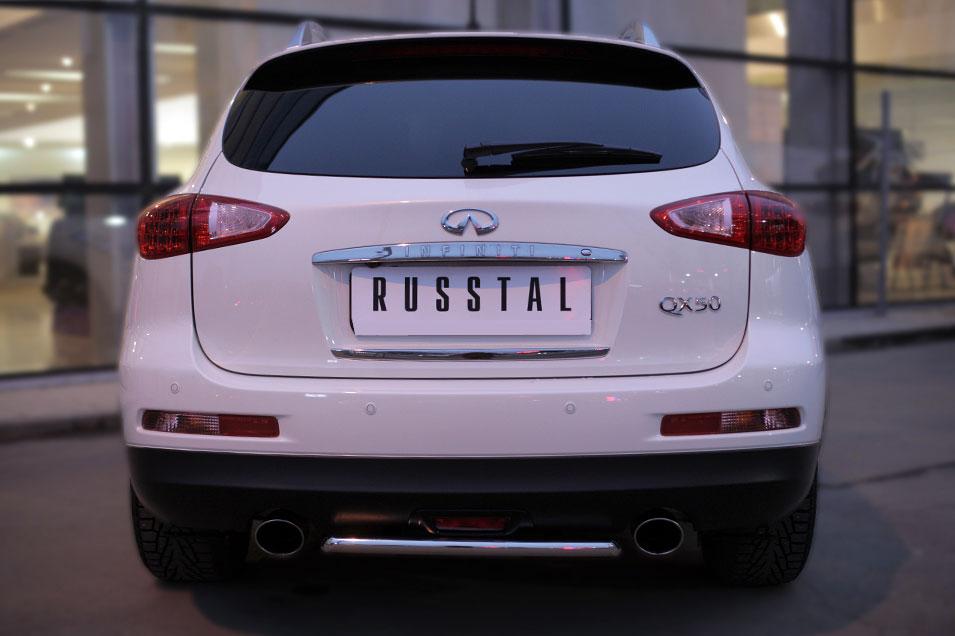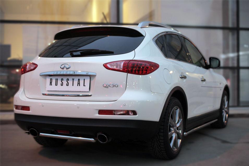 Защита заднего бампера Slitkoff для Infiniti QX 50 2014-2016 IQXZ-001969 изготовлена из высококачественной нержавеющей стали марки AISI 304, труба имеет диаметр 42 мм.