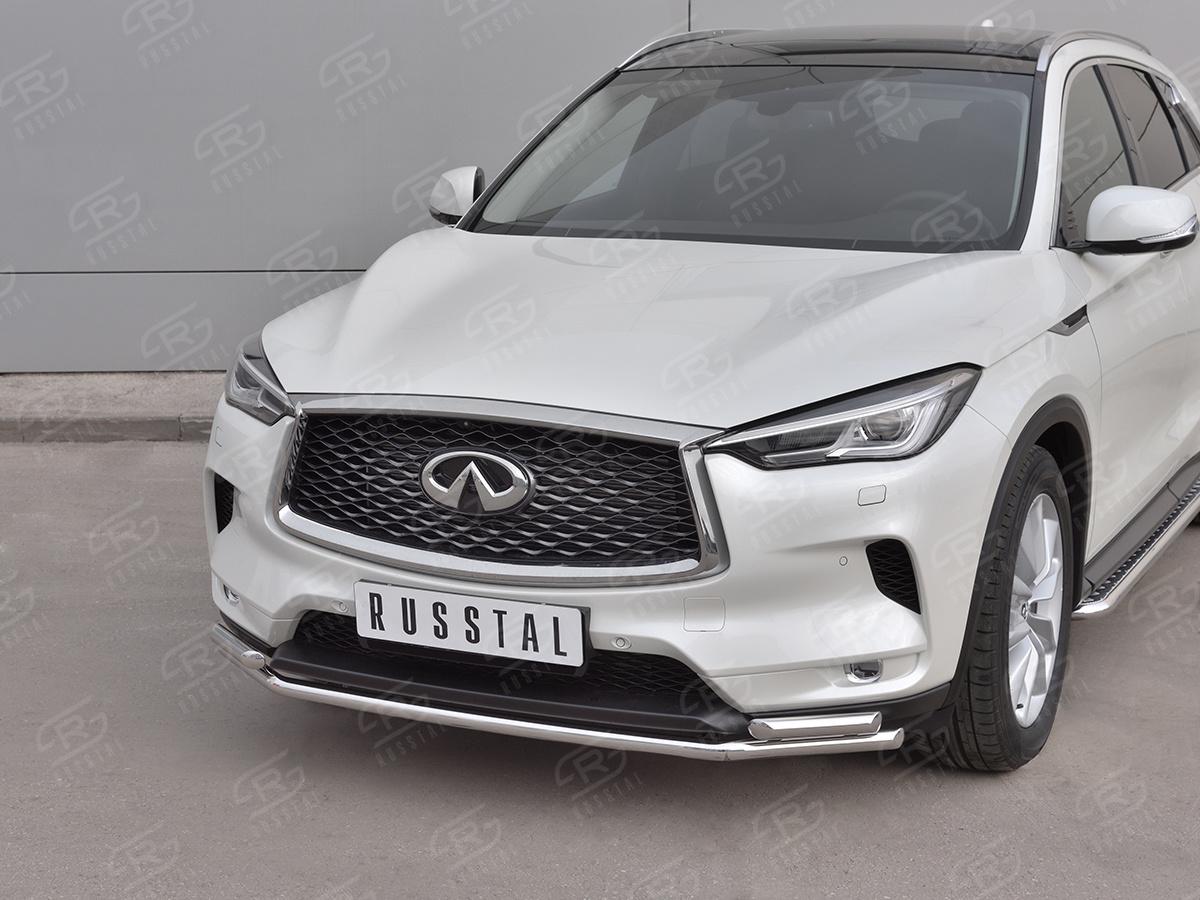 Защита переднего бампера d42 секции-d42х2 дуга для автомобиля Infiniti QX50 2018 арт. IQX5Z-003078 - представляет собой элемент тюнинга и защиты автомобиля и производится специально для данной модели. Данное изделие изготавливается из нержавеющей стали и полируется вручную, что обеспечивает сохранение отличного внешнего вида в течение длительного времени в наших непростых климатических условиях. Срок поставки составляет 1-5 дней. Установить деталь Защита переднего бампера d42 секции-d42х2 дуга для автомобиля Infiniti QX50 2018 арт. IQX5Z-003078 можно на нашем сервисе, предварительно записавшись по телефону.