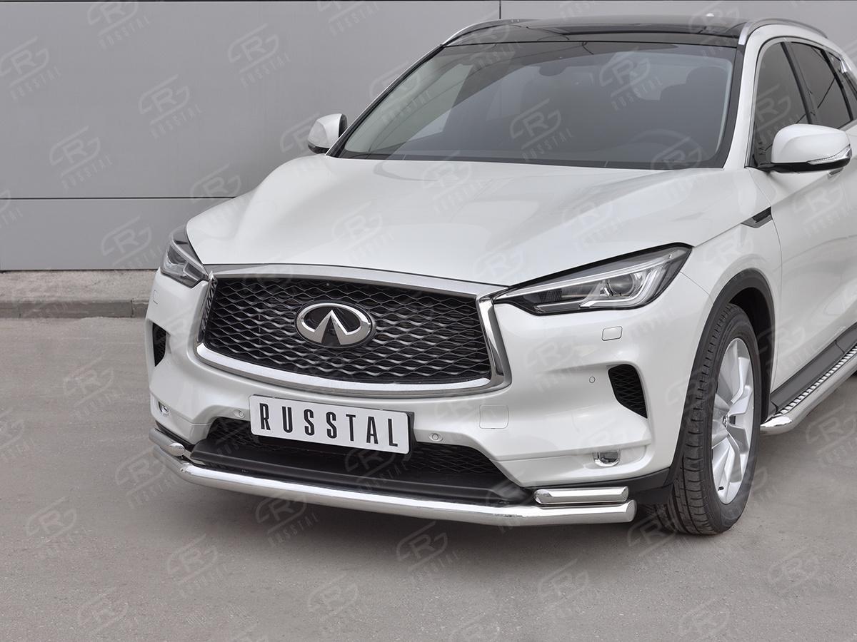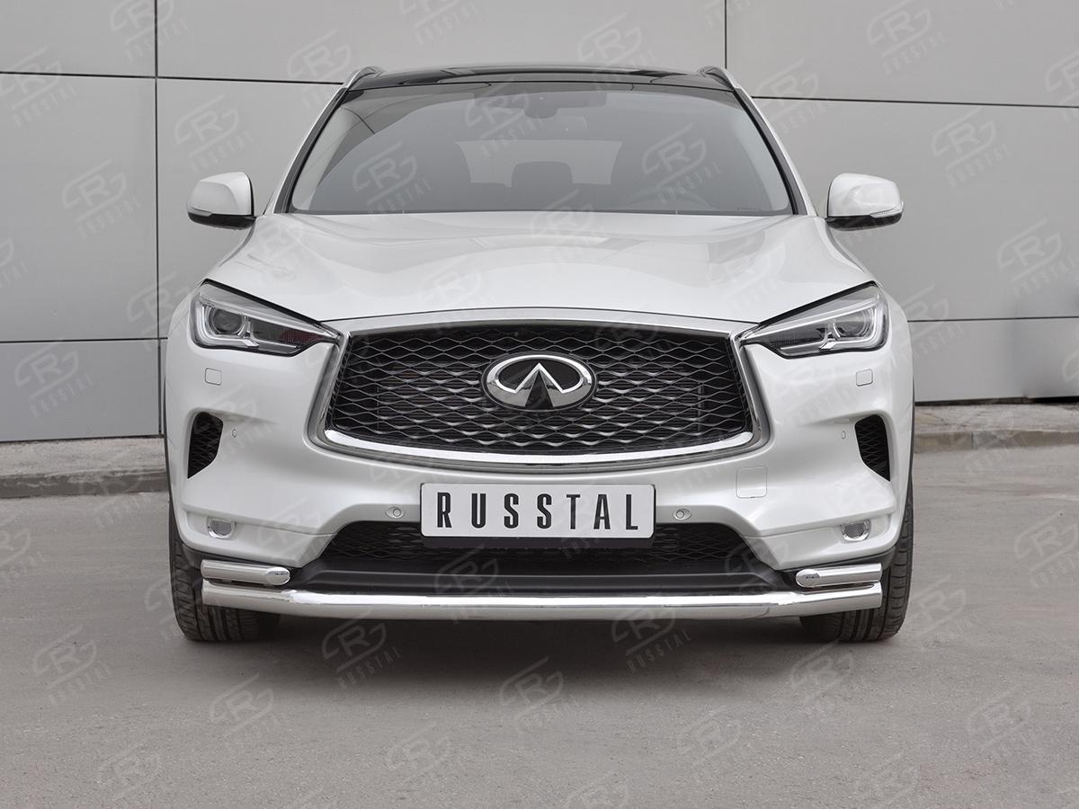 Защита переднего бампера d57 секции-d42х2 дуга для автомобиля Infiniti QX50 2018 арт. IQX5Z-003079 - представляет собой элемент тюнинга и защиты автомобиля и производится специально для данной модели. Данное изделие изготавливается из нержавеющей стали и полируется вручную, что обеспечивает сохранение отличного внешнего вида в течение длительного времени в наших непростых климатических условиях. Срок поставки составляет 1-5 дней. Установить деталь Защита переднего бампера d57 секции-d42х2 дуга для автомобиля Infiniti QX50 2018 арт. IQX5Z-003079 можно на нашем сервисе, предварительно записавшись по телефону.