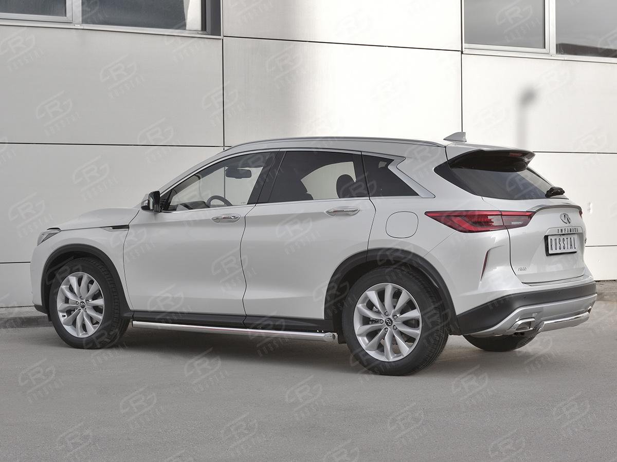 Защита заднего бампера d75х42 дуга для автомобиля Infiniti QX50 2018 арт. IQX5Z-003084 - представляет собой элемент тюнинга и защиты автомобиля и производится специально для данной модели. Данное изделие изготавливается из нержавеющей стали и полируется вручную, что обеспечивает сохранение отличного внешнего вида в течение длительного времени в наших непростых климатических условиях. Срок поставки составляет 1-5 дней. Установить деталь Защита заднего бампера d75х42 дуга для автомобиля Infiniti QX50 2018 арт. IQX5Z-003084 можно на нашем сервисе, предварительно записавшись по телефону.