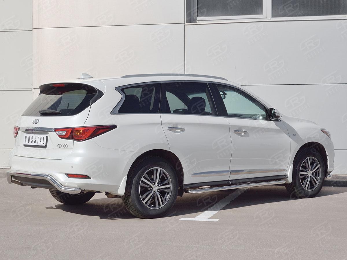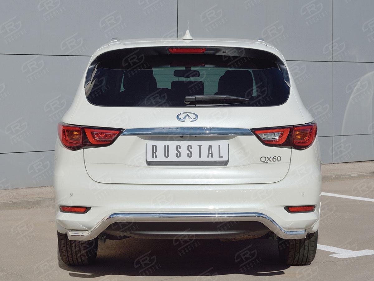 Защита заднего бампера Русcталь для Infiniti QX60 2016 (Инфинити QX 2016) IQXZ-002685 изготовлена из высококачественной нержавеющей стали марки AISI 304, труба имеет диаметр 57 мм.