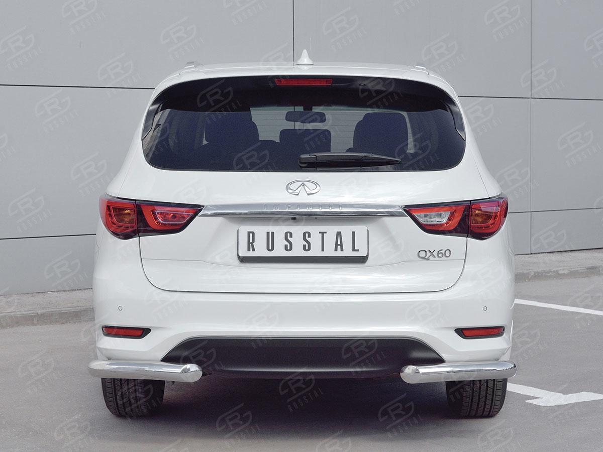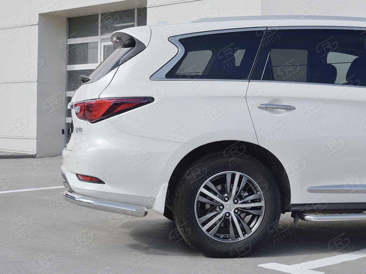Защита заднего бампера Русcталь для Infiniti QX60 2016 (Инфинити QX 2016) IQXZ-002690 изготовлена из высококачественной нержавеющей стали марки AISI 304, труба имеет диаметр 76 мм.