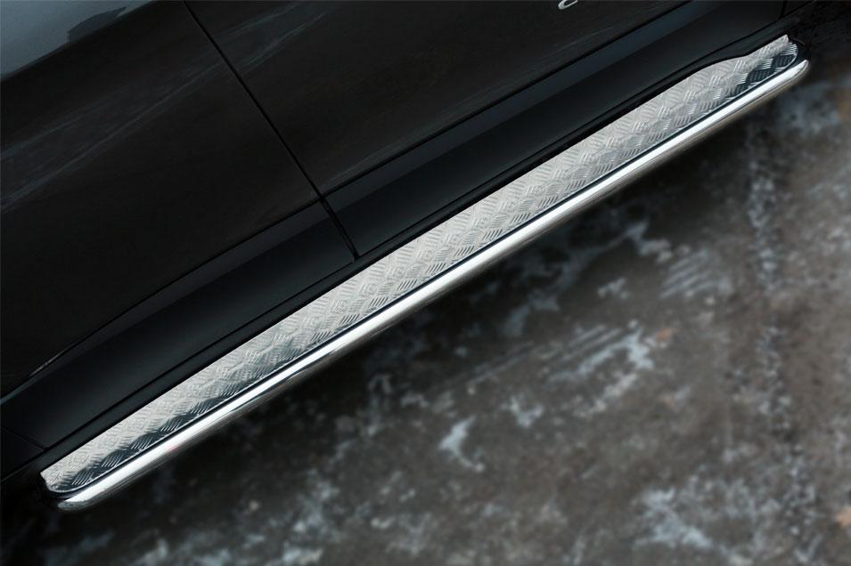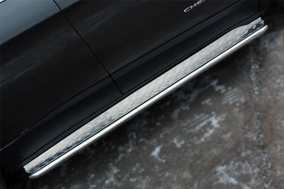 Пороги Slitkoff для Jeep Cherokee 2014 (KL) JCL-001989 изготовлены из высококачественной нержавеющей стали марки AISI 304, труба имеет диаметр 42 мм.
