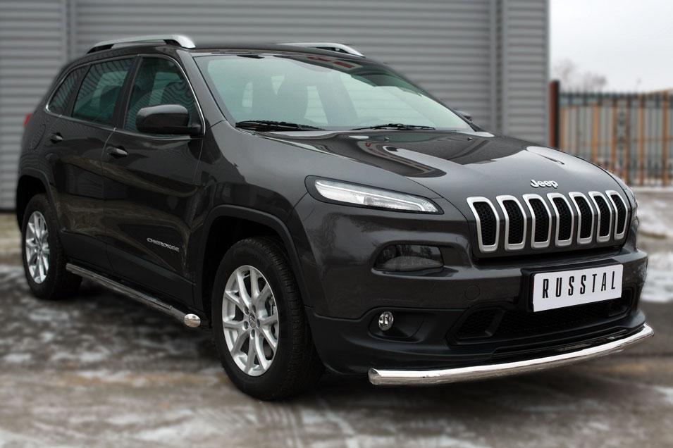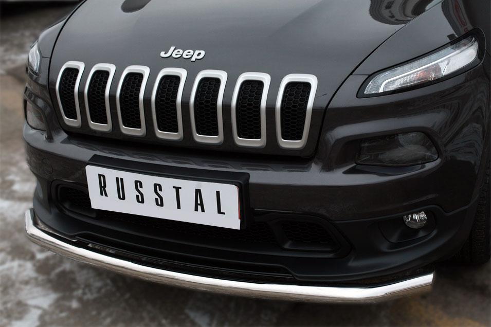 Защита переднего бампера Slitkoff для Jeep Cherokee 2014 (KL) JCZ-001982 изготовлена из высококачественной нержавеющей стали марки AISI 304, труба имеет диаметр 57 мм.