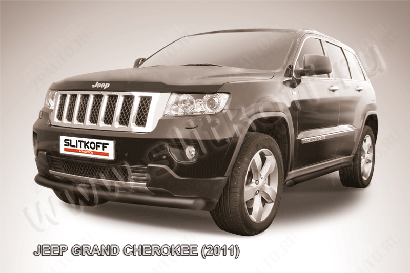 Защита переднего бампера d76 радиусная черная Jeep Grand Cherokee (2010-2013) , Slitkoff, арт. JGCH002B
