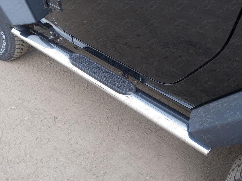Пороги овальные с накладкой 120х60 мм для автомобиля Jeep Wrangler 3D (3.6, JK) 2006-2018 представляет собой элемент тюнинга и защиты автомобиля и производится специально для данной модели. Данное изделие изготавливается из нержавеющей стали и полируется вручную, что обеспечивает сохранение отличного внешнего вида в течение длительного времени в наших непростых климатических условиях. Срок поставки продукции производства компании TCC Тюнинг составляет 1-5 дней. Установить Пороги овальные с накладкой 120х60 мм для автомобиля Jeep Wrangler 3D (3.6, JK) 2006-2018 можно на нашем сервисе, предварительно записавшись по телефону.