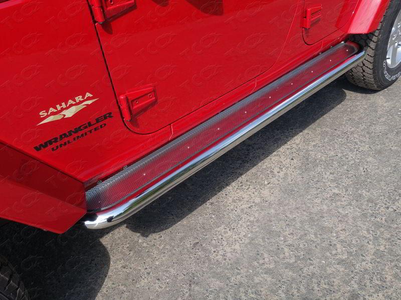 Пороги с площадкой (нерж. лист) 60,3 мм для автомобиля Jeep Wrangler 5D (3.6, JK) 2006-2018 представляет собой элемент тюнинга и защиты автомобиля и производится специально для данной модели. Данное изделие изготавливается из нержавеющей стали и полируется вручную, что обеспечивает сохранение отличного внешнего вида в течение длительного времени в наших непростых климатических условиях. Срок поставки продукции производства компании TCC Тюнинг составляет 1-5 дней. Установить Пороги с площадкой (нерж. лист) 60,3 мм для автомобиля Jeep Wrangler 5D (3.6, JK) 2006-2018 можно на нашем сервисе, предварительно записавшись по телефону.