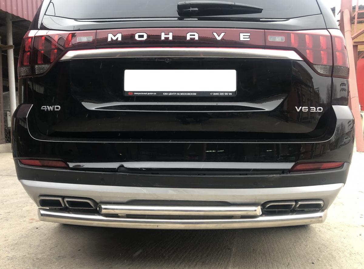 Защита заднего бампера d 60/42 арт. KMH.21.16 для автомобиля KIA Mohave 2021 - представляет собой элемент тюнинга и защиты автомобиля и производится специально для данной модели. Данное изделие изготавливается из нержавеющей стали и полируется вручную, что обеспечивает сохранение отличного внешнего вида в течение длительного времени в наших непростых климатических условиях. Срок поставки составляет 1-5 дней. Установить деталь Защита заднего бампера d 60/42 арт. KMH.21.16 для автомобиля KIA Mohave 2021 можно на нашем сервисе, предварительно записавшись по телефону.