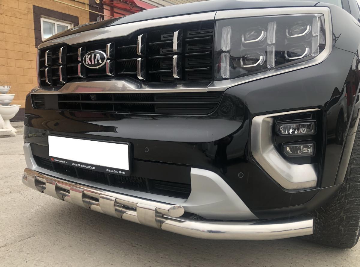 Защита переднего бампера d 60/42 арт. KMH.21.75 для автомобиля KIA Mohave 2021 - представляет собой элемент тюнинга и защиты автомобиля и производится специально для данной модели. Данное изделие изготавливается из нержавеющей стали и полируется вручную, что обеспечивает сохранение отличного внешнего вида в течение длительного времени в наших непростых климатических условиях. Срок поставки составляет 1-5 дней. Установить деталь Защита переднего бампера d 60/42 арт. KMH.21.75 для автомобиля KIA Mohave 2021 можно на нашем сервисе, предварительно записавшись по телефону.