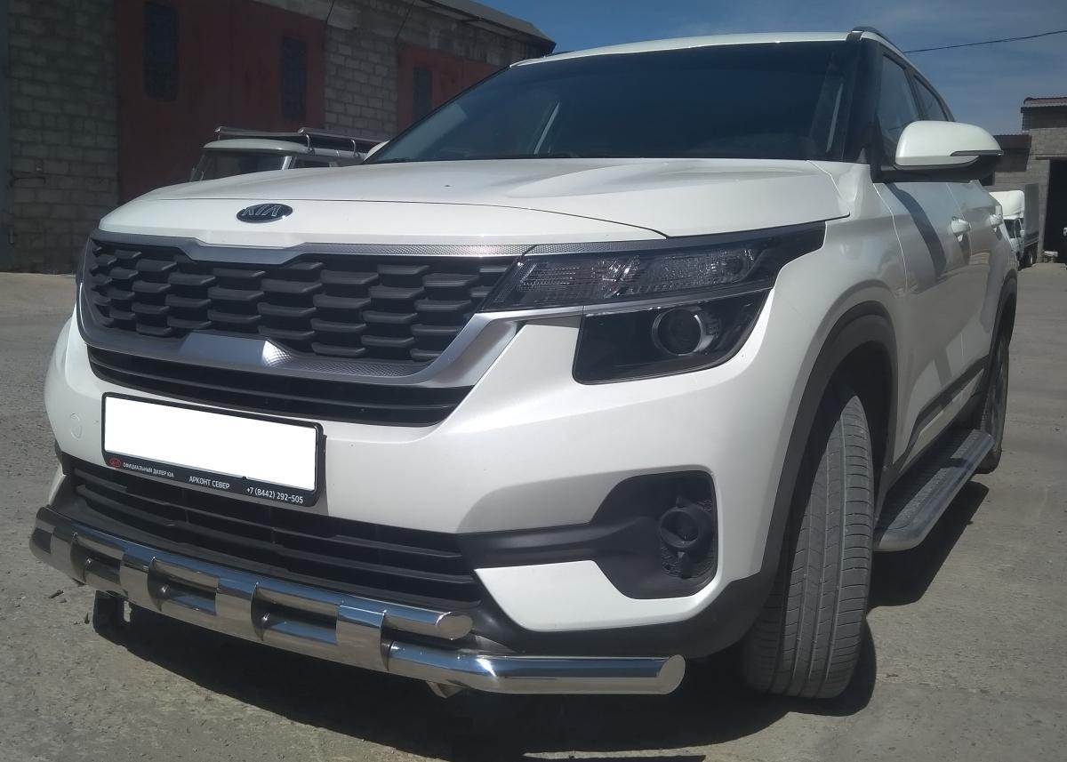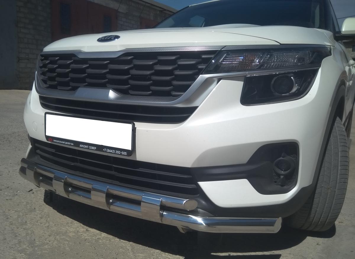 Защита переднего бампера d 60/42 арт. KSL.20.75 для автомобиля Kia Seltos - представляет собой элемент тюнинга и защиты автомобиля и производится специально для данной модели. Данное изделие изготавливается из нержавеющей стали и полируется вручную, что обеспечивает сохранение отличного внешнего вида в течение длительного времени в наших непростых климатических условиях. Срок поставки составляет 1-5 дней. Установить деталь Защита переднего бампера с перемычками d60/42 арт.KSL.20.75 для автомобиля Kia Seltos можно на нашем сервисе, предварительно записавшись по телефону.