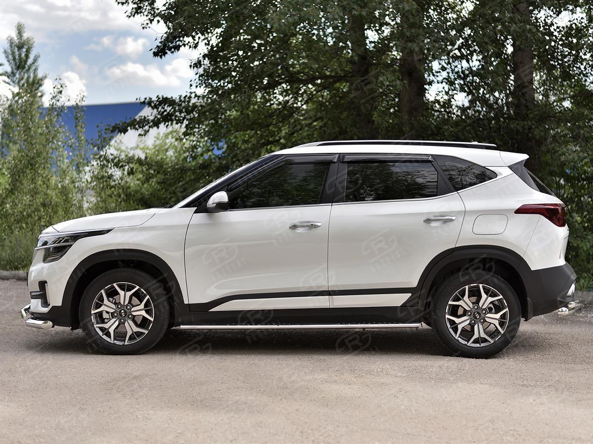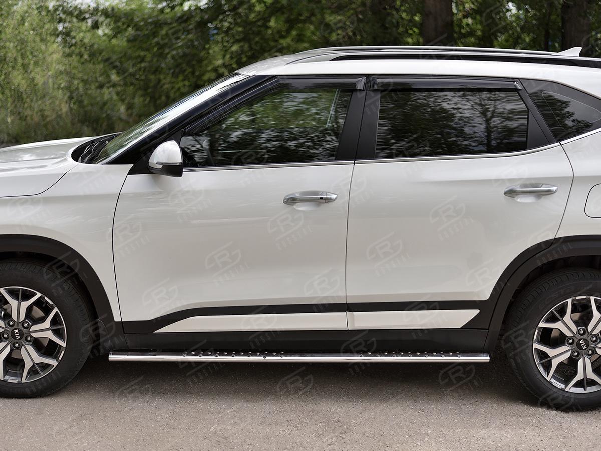 Пороги d 75x42 арт. KSLO-003416 для автомобиля Kia Seltos - представляет собой элемент тюнинга и защиты автомобиля и производится специально для данной модели. Данное изделие изготавливается из нержавеющей стали и полируется вручную, что обеспечивает сохранение отличного внешнего вида в течение длительного времени в наших непростых климатических условиях. Срок поставки составляет 1-5 дней. Установить деталь Пороги труба 75х42 овал с проступью KSLO-003416 для автомобиля Kia Seltos можно на нашем сервисе, предварительно записавшись по телефону.
