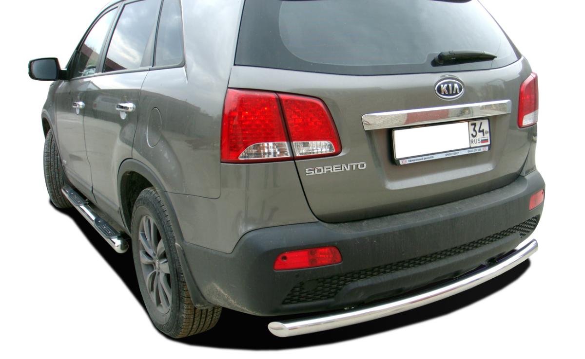 Защита заднего бампера труба (радиус) для автомобиля KIA Sorento 2009-2012 (артикул КSR.09.13) представляет собой элемент тюнинга и защиты автомобиля и производится специально для данной модели. Данное изделие изготавливается из нержавеющей стали и полируется вручную, что обеспечивает сохранение отличного внешнего вида в течение длительного времени в наших непростых климатических условиях. Срок поставки продукции производства компании ЮКК Россия составляет 1-5 дней. Установить деталь Защита заднего бампера труба (радиус) для автомобиля KIA Sorento 2009-2012 с артикулом КSR.09.13 можно на нашем сервисе, предварительно записавшись по телефону.