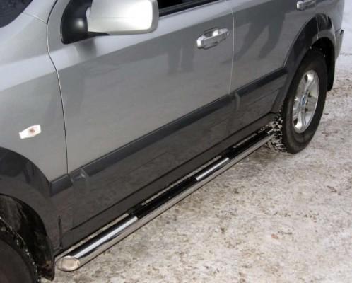 Пороги для KIA Sorento 2006-2009 изготовлены из высококачественной нержавеющей стали марки AISI 304, труба имеет диаметр 57 мм. Торцы труб скошены под 45 градусов.