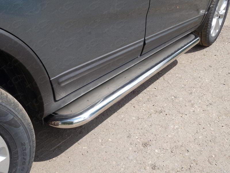 Пороги с площадкой (нерж. лист) 60,3 мм для автомобиля Kia Sorento 2012- представляет собой элемент тюнинга и защиты автомобиля и производится специально для данной модели. Данное изделие изготавливается из нержавеющей стали и полируется вручную, что обеспечивает сохранение отличного внешнего вида в течение длительного времени в наших непростых климатических условиях. Срок поставки продукции производства компании TCC Тюнинг составляет 1-5 дней. Установить Пороги с площадкой (нерж. лист) 60,3 мм для автомобиля Kia Sorento 2012- можно на нашем сервисе, предварительно записавшись по телефону.