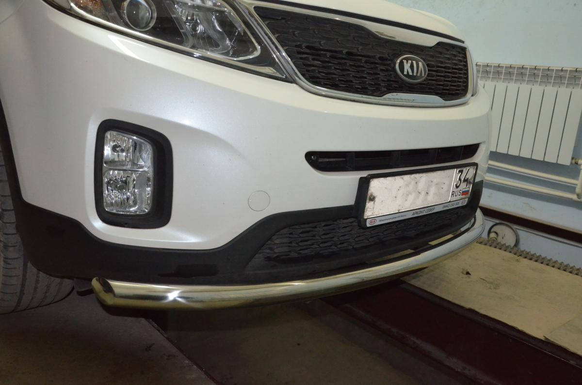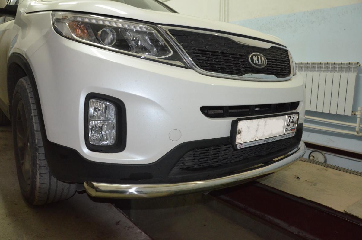 Защита переднего бампера для автомобиля KIA Sorento 2013 (артикул KSR.13.02) представляет собой элемент тюнинга и защиты автомобиля и производится специально для данной модели. Данное изделие изготавливается из нержавеющей стали и полируется вручную, что обеспечивает сохранение отличного внешнего вида в течение длительного времени в наших непростых климатических условиях. Срок поставки продукции производства компании ЮКК Россия составляет 1-5 дней. Установить деталь Защита переднего бампера для автомобиля KIA Sorento 2013 с артикулом KSR.13.02 можно на нашем сервисе, предварительно записавшись по телефону.