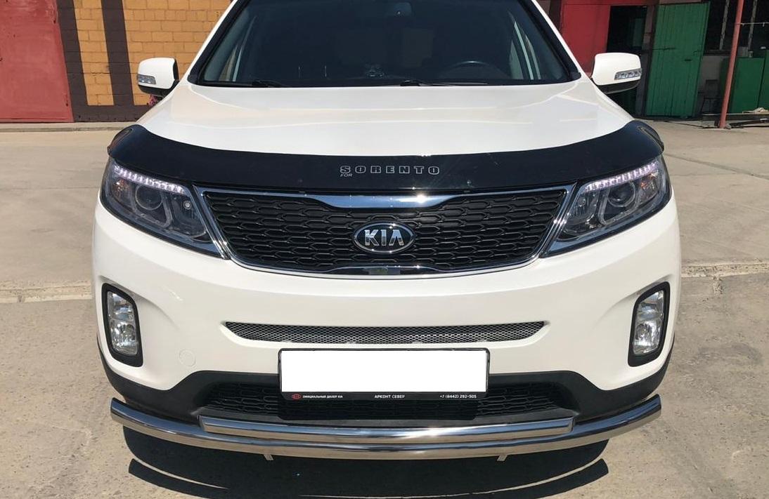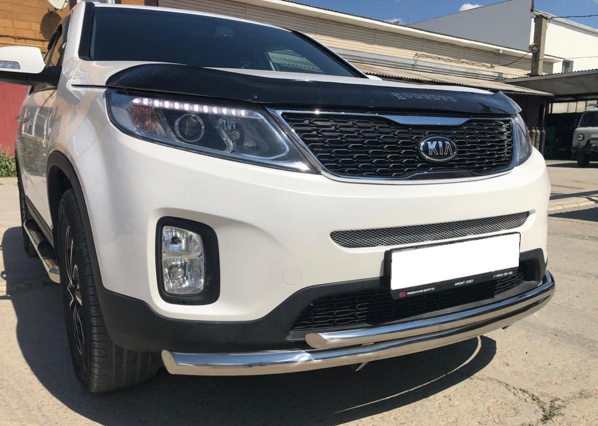Защита переднего бампера двойная для автомобиля KIA Sorento 2013. KSR.13.03 представляет собой элемент тюнинга и защиты автомобиля и производится специально для данной модели. Данное изделие изготавливается из нержавеющей стали и полируется вручную, что обеспечивает сохранение отличного внешнего вида в течение длительного времени в наших непростых климатических условиях. Срок поставки продукции производства компании ЮКК Россия составляет 1-5 дней. Установить деталь Защита переднего бампера двойная для автомобиля KIA Sorento 2013. KSR.13.03 можно на нашем сервисе, предварительно записавшись по телефону.