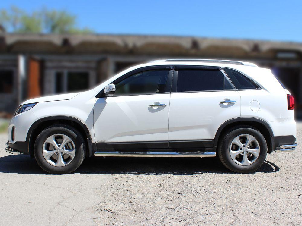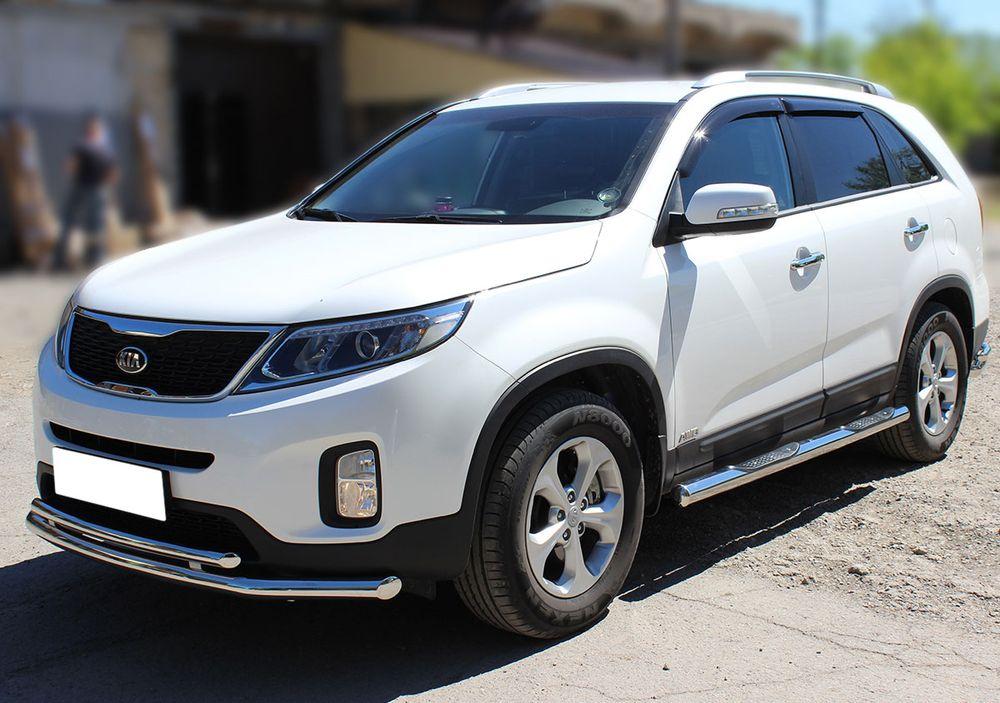 Пороги d76 степ (с проступью) для KIA Sorento II 2012, Технотек KST13_2.3 изготовлены из высококачественной нержавеющей стали, труба имеет диаметр 76 мм. В комплекте поставляется набор крепежа и инструкция по установке.