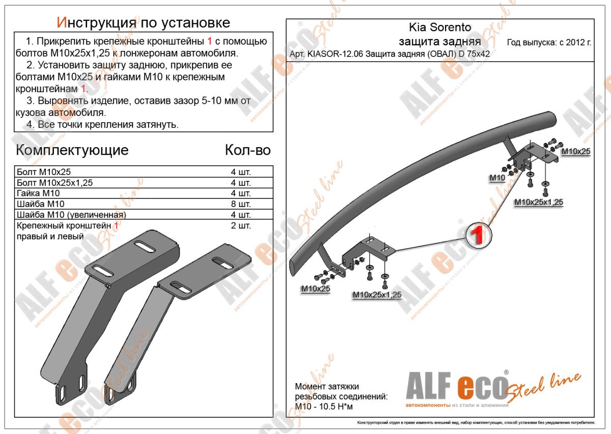 Защита задняя двойная KIASOR-12.09 для Kia Sorento (Киа Соренто) изготовлена из нержавеющей стали AISI 304 (аналог 08Х18Н10). Труба имеет диаметр 60,3/42,4 мм. Детали для тюнинга из нержавейки не боятся коррозии, они прочны и долговечны. Все элементы обвеса на предприятии ALFeco в Нижнем Тагиле, проходят строгий контроль качества. br> Защита заднего бампера защитит бампер от нежелательных повреждений: царапин и потертостей, которые могут появиться во дворах и на тесных парковках. Для установки данного изделия на Киа Соренто сверления кузова не потребуется, достаточно штатных точек крепления. Записаться на установку можно по телефону. Срок поставки 1-7 дней в зависимости от наличия на складе, уточнить можно связавшись с нами удобным для вас способом.
