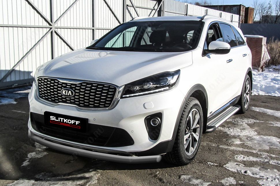 Защита переднего бампера d57 серебристая Kia Sorento Prime (2017-2020) , Slitkoff, арт. KS17-002S