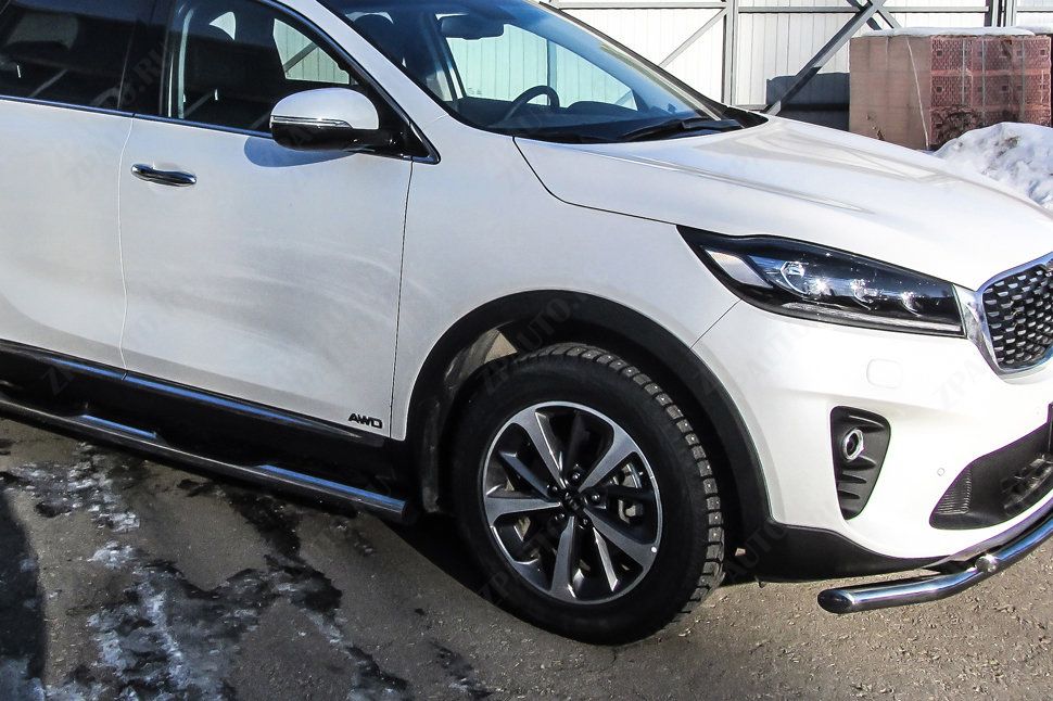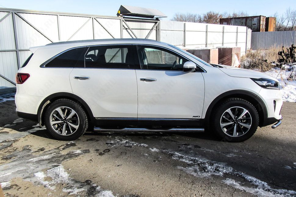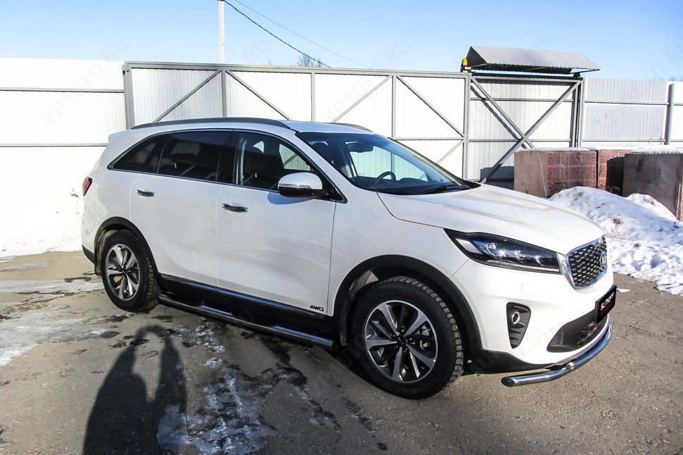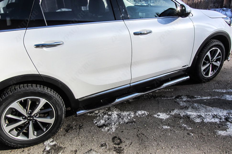 Защита порогов d76 с проступями Kia Sorento Prime (2017-2020) , Slitkoff, арт. KS17-003 (дополнительное изображение 1)