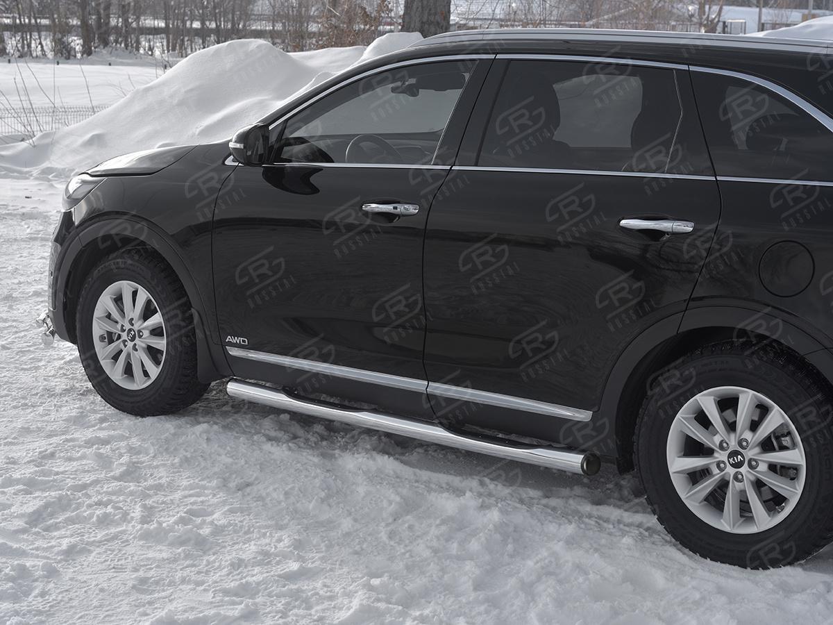 Пороги труба d76 с накладкой (вариант 2) KSPT-0031382 для автомобиля KIA SORENTO PRIME 2018- представляет собой элемент тюнинга и защиты автомобиля и производится специально для данной модели. Данное изделие изготавливается из нержавеющей стали и полируется вручную, что обеспечивает сохранение отличного внешнего вида в течение длительного времени в наших непростых климатических условиях. Срок поставки продукции производства компании Slitkoff составляет 1-5 дней. Установить деталь Пороги труба d76 с накладкой (вариант 2) KSPT-0031382 для автомобиля KIA SORENTO PRIME 2018- можно на нашем сервисе, предварительно записавшись по телефону.