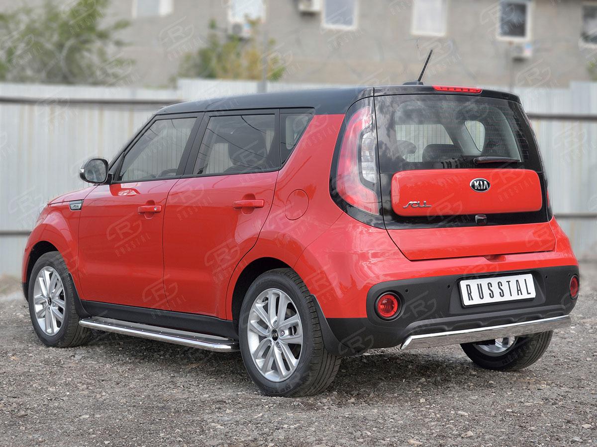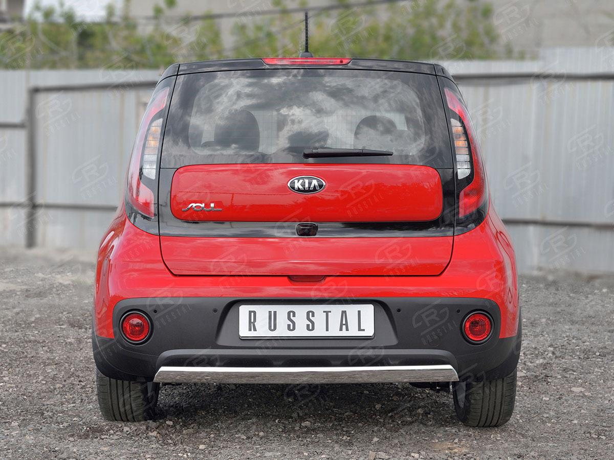 Защита заднего бампера Русcталь для KIA Soul II 2017- (Киа Соул 2017) KSOZ-002759 изготовлена из высококачественной нержавеющей стали марки AISI 304, она также называется пищевая нержавейка. Труба имеет диаметр 75x42 мм.