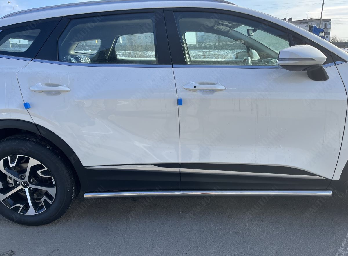 Пороги d 53 арт. KSP.22.32 для автомобиля KIA Sportage 2022 - представляет собой элемент тюнинга и защиты автомобиля и производится специально для данной модели. Данное изделие изготавливается из нержавеющей стали и полируется вручную, что обеспечивает сохранение отличного внешнего вида в течение длительного времени в наших непростых климатических условиях. Срок поставки составляет 1-5 дней. Установить деталь Пороги d 53 арт. KSP.22.32 для автомобиля KIA Sportage 2022 можно на нашем сервисе, предварительно записавшись по телефону.