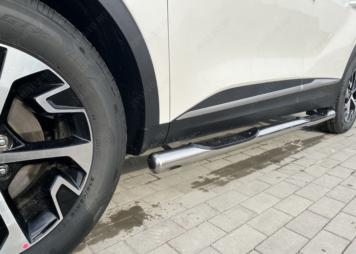 Пороги d 76 арт. KSP.22.93 для автомобиля KIA Sportage 2022 - представляет собой элемент тюнинга и защиты автомобиля и производится специально для данной модели. Данное изделие изготавливается из нержавеющей стали и полируется вручную, что обеспечивает сохранение отличного внешнего вида в течение длительного времени в наших непростых климатических условиях. Срок поставки составляет 1-5 дней. Установить деталь Пороги d 76 арт. KSP.22.93 для автомобиля KIA Sportage 2022 можно на нашем сервисе, предварительно записавшись по телефону.