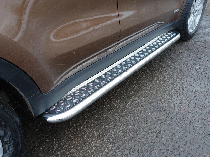 Пороги с площадкой 60,3 мм для автомобиля Kia Sportage (QL) 2018- представляет собой элемент тюнинга и защиты автомобиля и производится специально для данной модели. Данное изделие изготавливается из нержавеющей стали и полируется вручную, что обеспечивает сохранение отличного внешнего вида в течение длительного времени в наших непростых климатических условиях. Срок поставки продукции производства компании TCC Тюнинг составляет 1-5 дней. Установить Пороги с площадкой 60,3 мм для автомобиля Kia Sportage (QL) 2018- можно на нашем сервисе, предварительно записавшись по телефону.