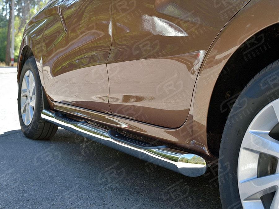 Пороги Slitkoff для Lada XRAY (Лада XRAY) LXRT-0023881 изготовлены из высококачественной нержавеющей стали марки AISI 304, труба имеет диаметр 76 мм.