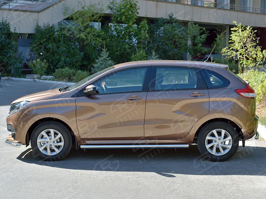 Пороги Slitkoff для Lada XRAY (Лада XRAY) LXRT-0023891 изготовлены из высококачественной нержавеющей стали марки AISI 304, труба имеет диаметр 57 мм.