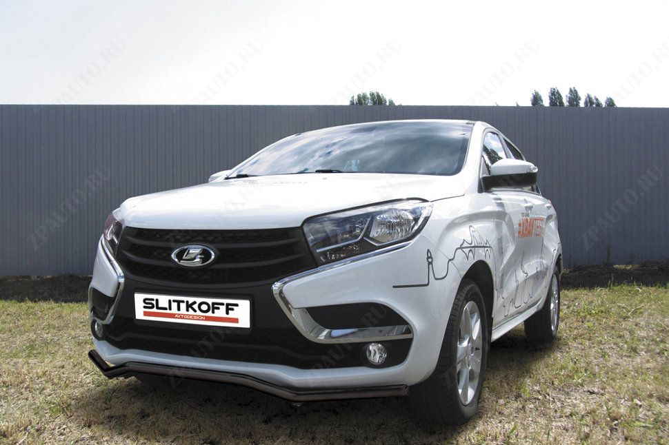 Защита переднего бампера d42 "волна" черная Lada Xray (2015-2022) , Slitkoff, арт. LadXR001B