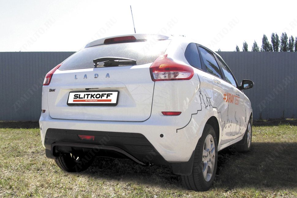 Защита заднего бампера d42 скоба черная Lada Xray (2015-2023) , Slitkoff, арт. LadXR010B